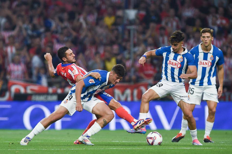 西班牙人主帅马丁内斯的 5-4-1 体系核心在于 "五后卫压缩 + 边路反击"。球队场均控球率仅 41%(西甲倒数第四),但反击效率突出,巴雷与武磊的边路速度组合能制造纵深威胁,两人场均合计完成 5.8 次成功突破,上赛季 31% 的进球来自这种边路突破。中场采用 "双后腰绞杀" 战术,维列纳与达德尔场均合计完成 7.6 次抢断,试图切断马竞的中场串联。